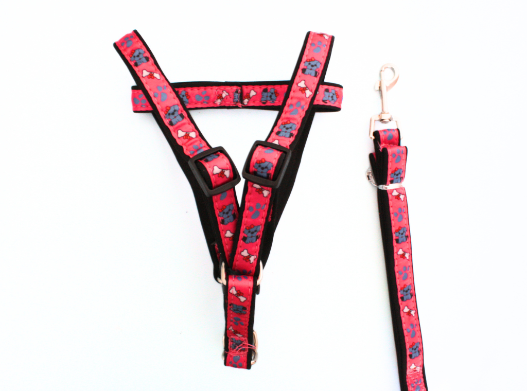 Este pretal estampado con huellitas y huesitos combina comodidad, resistencia y estilo para los paseos diarios de tu mascota.